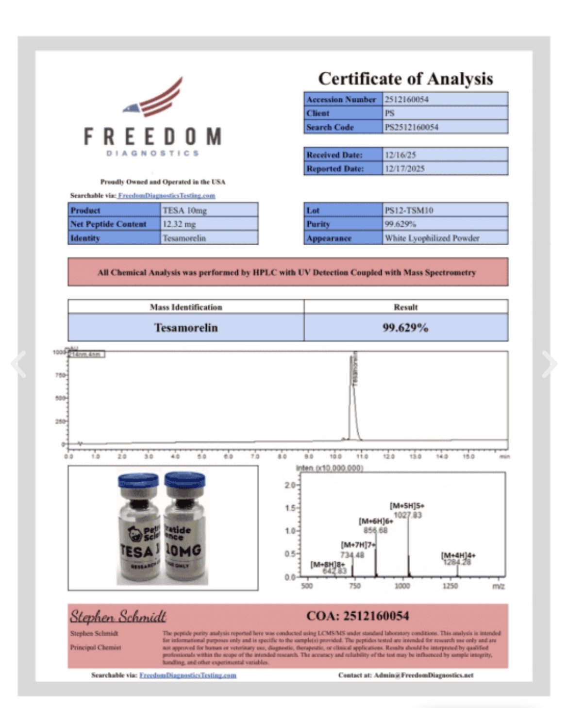 This product is supplied as a lyophilized powder to maintain stability and integrity during storage and handling. Each vial contains 10 mg of Tesa, independently tested for purity and quality.
